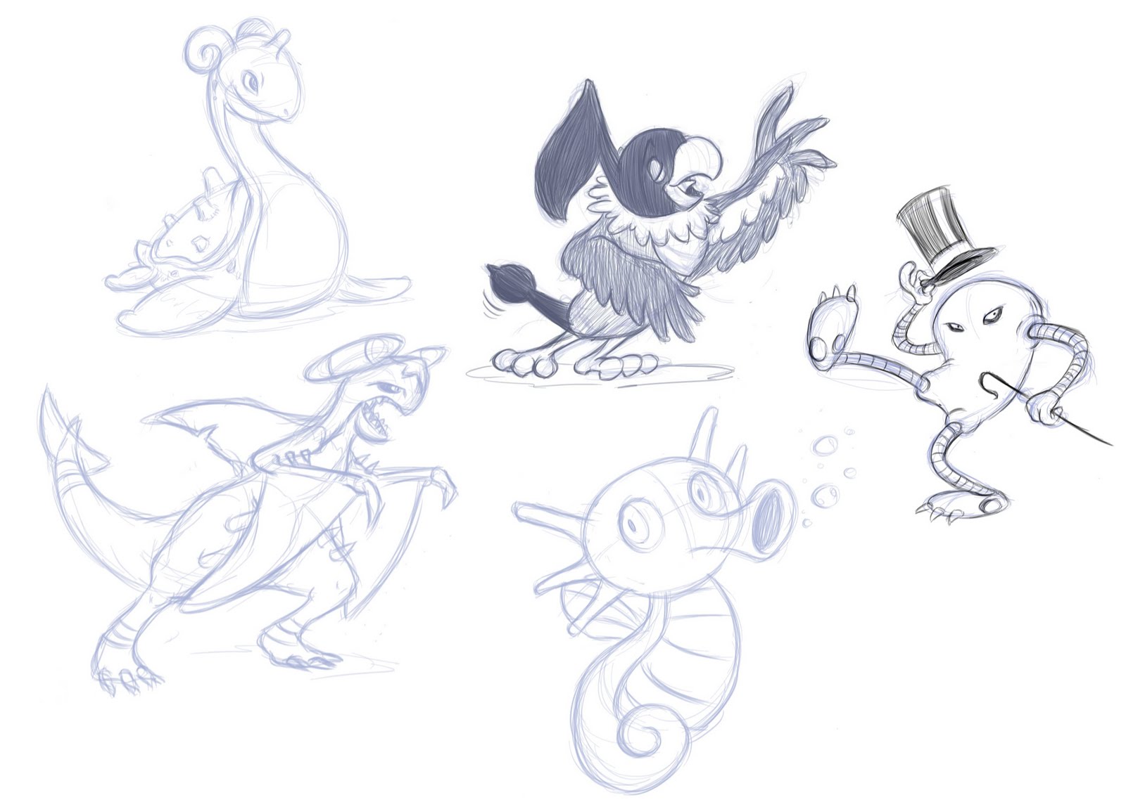Recently, I was conversing with a few friends, and I asked them what I should draw. They named some random Pokemon I never heard of, so I looked up reference and drew it. Then somebody named another, and another and another.... so now it's become this regular thing, where I draw like 5 or 10 random Pokemon and compile them together. Here's a few of them